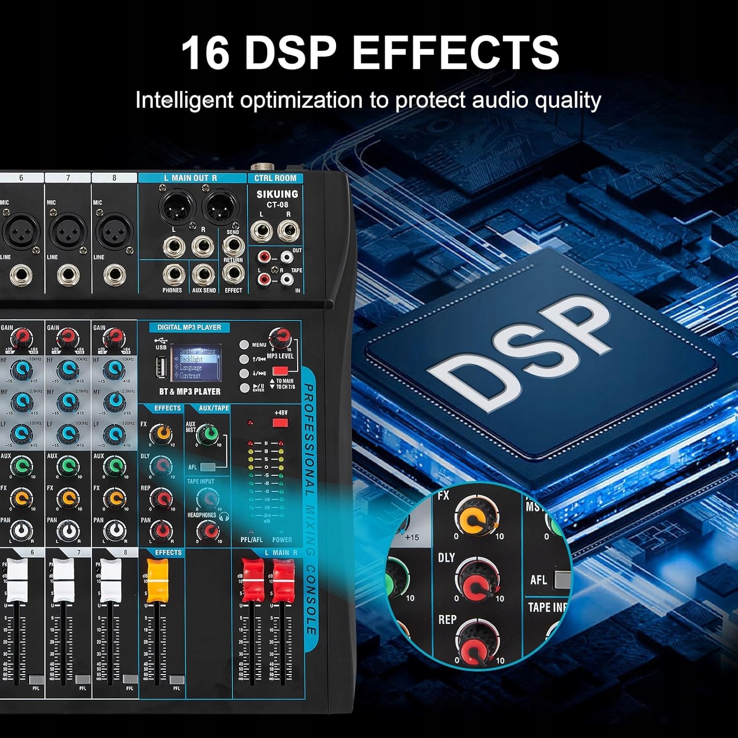 SIKUING 8-канальный микшер, черный, 16 DSP, питание USB 48В