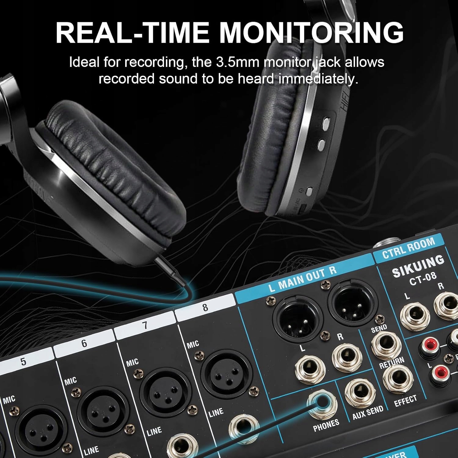 Микшер SIKUING 8-канальный, черный, 16 DSP, питание USB 48 В