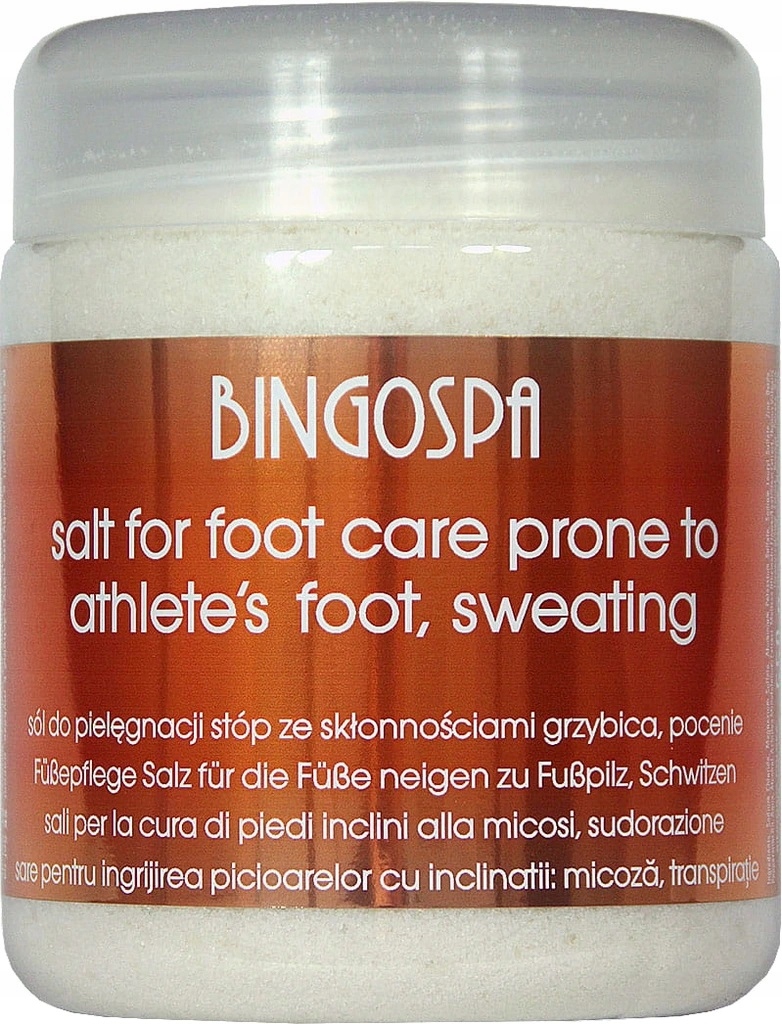 Соль BingoSpa — эффективное косметическое средство. против потливости ног, очень хорошо переносится кожей. Регулярные ванночки для ног значительно снижают склонность эпидермиса между пальцами к растрескиванию и уменьшают склонность ног к поту.