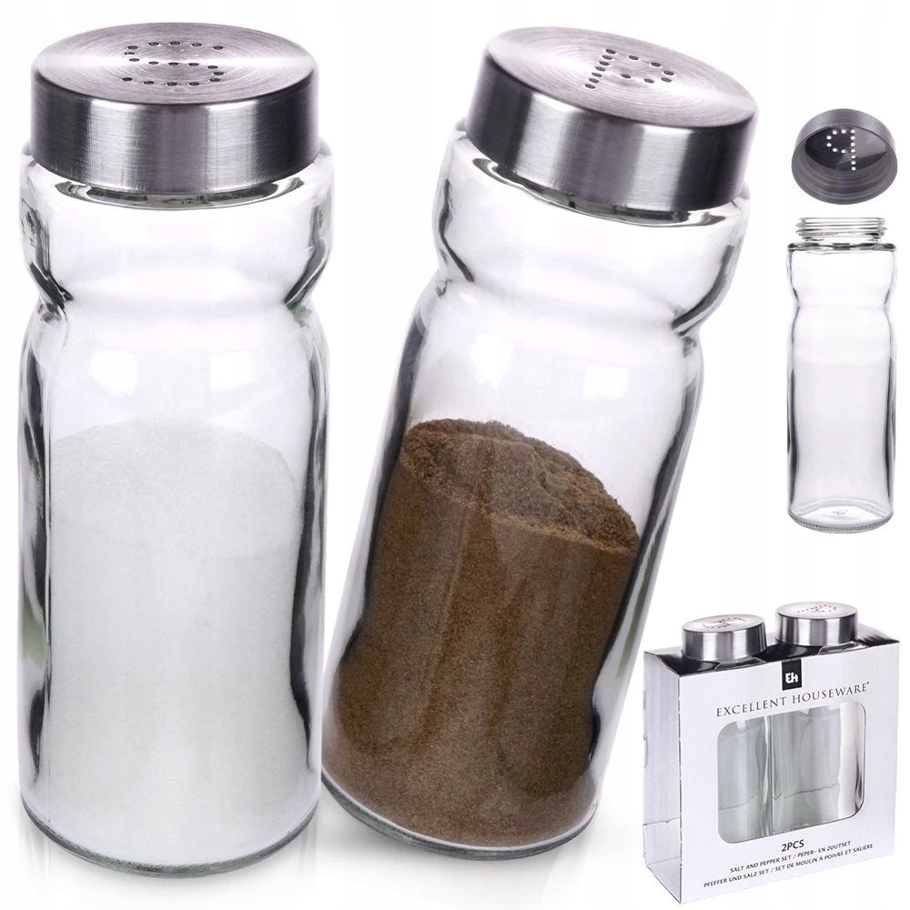 - стекло - набор, состоящий из солевого шейкера и мят из стекла и нержавеющей стали. Размеры контейнера 5 x 14 см. Емкость каждого контейнера составляет 150 мл. Отверстия, которые создают буквы, позволят вам дозировать правильное количество специй без риска добавления слишком большого количества. Закрытие специй заставит их сохранить свою свежесть и аромат дольше. Прозрачное стекло позволит вам легко распознать специю, помещенную внутри. Шапки с обозначением S и P позволят вам отличить соль от перца. Полезно как в доме, так и в гастрономии. Они имеют классическую форму и цвет. Изготовленные из стекла и нержавеющей стали, они имеют крышки с обозначением S и P. Легко чистить и использовать. Специи дозирования из контейнера гораздо удобнее, чем прямо из сумки. Производится в соответствии с европейскими стандартами