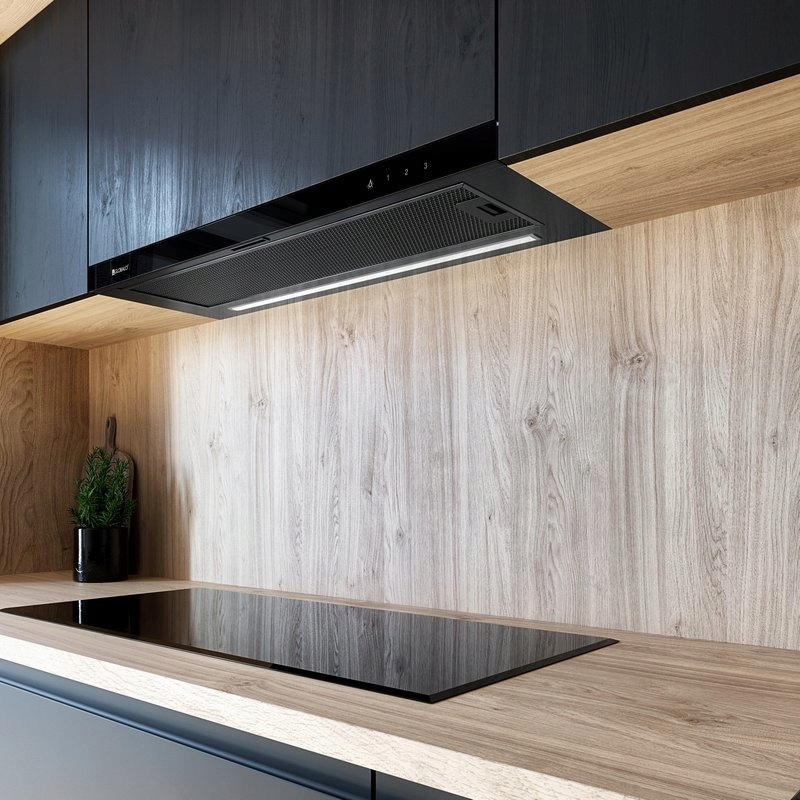SILENT Встраиваемая телескопическая кухонная вытяжка Globalo Teslo 90см ЧЕРНАЯ