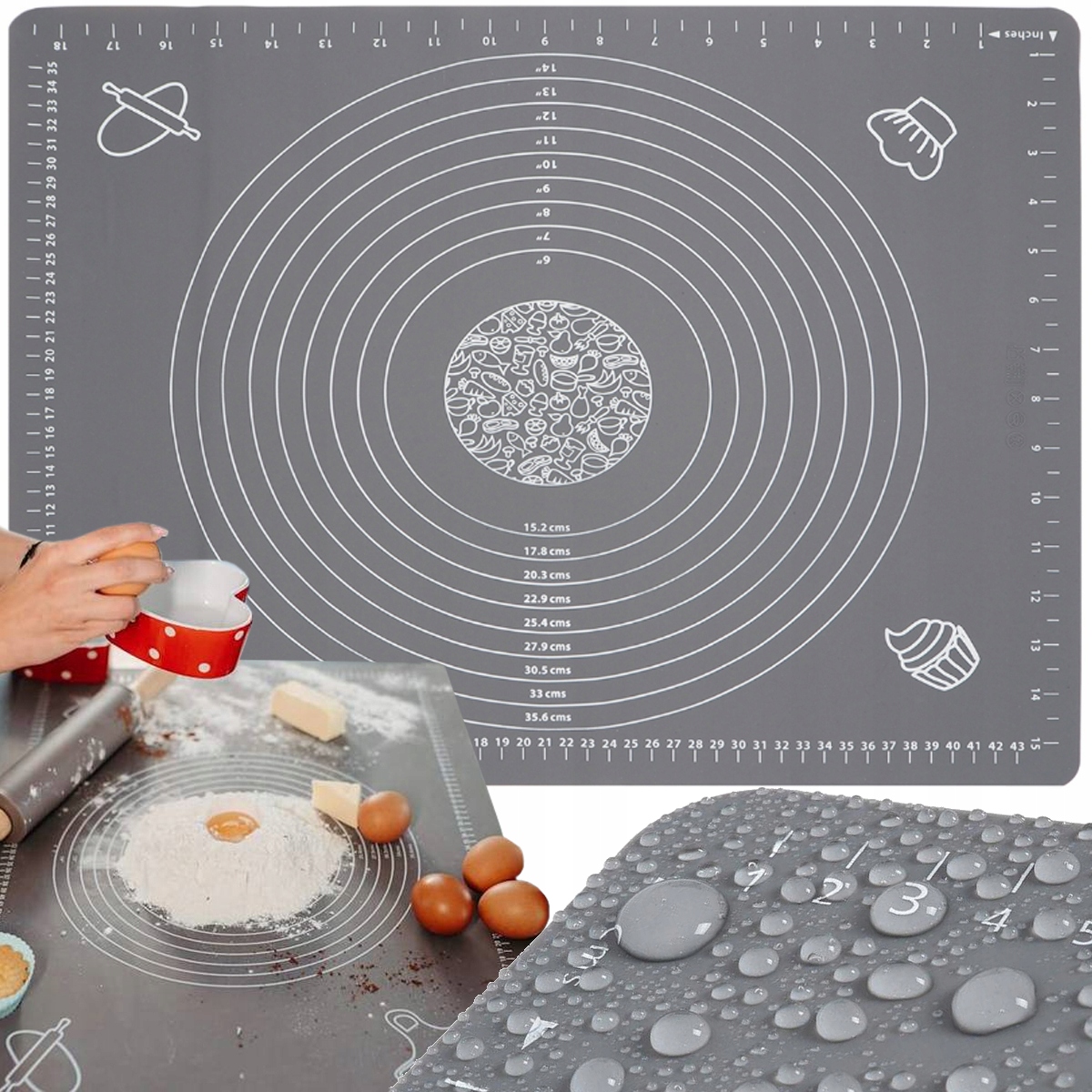 СИЛИКОНОВЫЙ КУХОННЫЙ КОВРИК ДЛЯ ТЕСТА С РАЗМЕРАМИ + РАЛОК