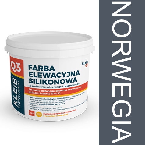 KLEIB Q3 — силиконовая фасадная краска, предназначенная в основном для окраски тонкослойных минеральных и силиконовых штукатурок в системах изоляции зданий KLEIB и KLEIB W. Также пригодна для использования на минеральных основаниях, таких как: неокрашенные цементные штукатурки, цементно-известковые штукатурки, неоштукатуренные стены из бетона, кирпича, блоков, керамических или силиконовых блоков. Краску можно использовать снаружи здания для защитно-декоративной покраски.