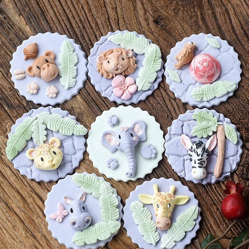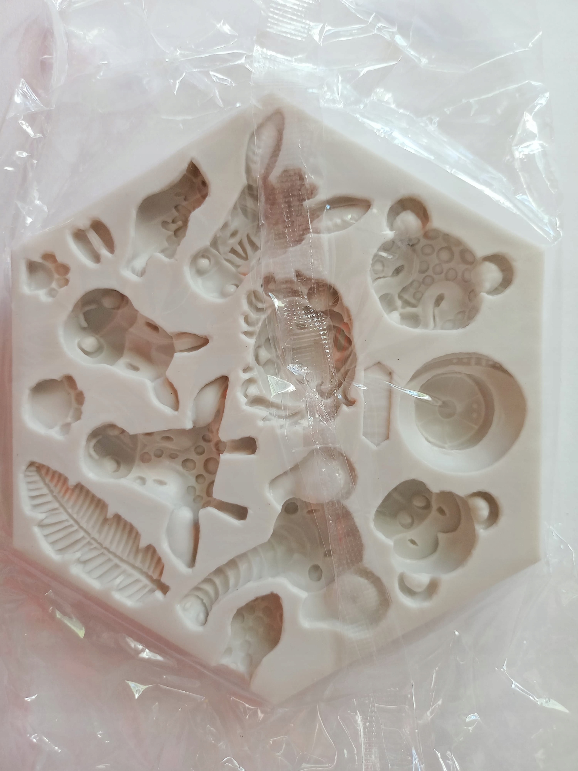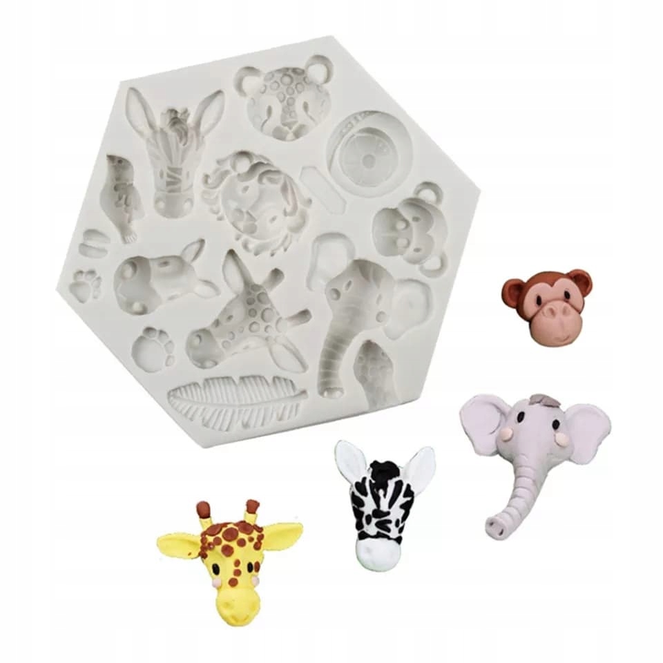 Силиконовая форма Джунгли, Сафари, Слон, Обезьянка, Тигр, Зебра, Жираф, Лев, Бегемот, Змея