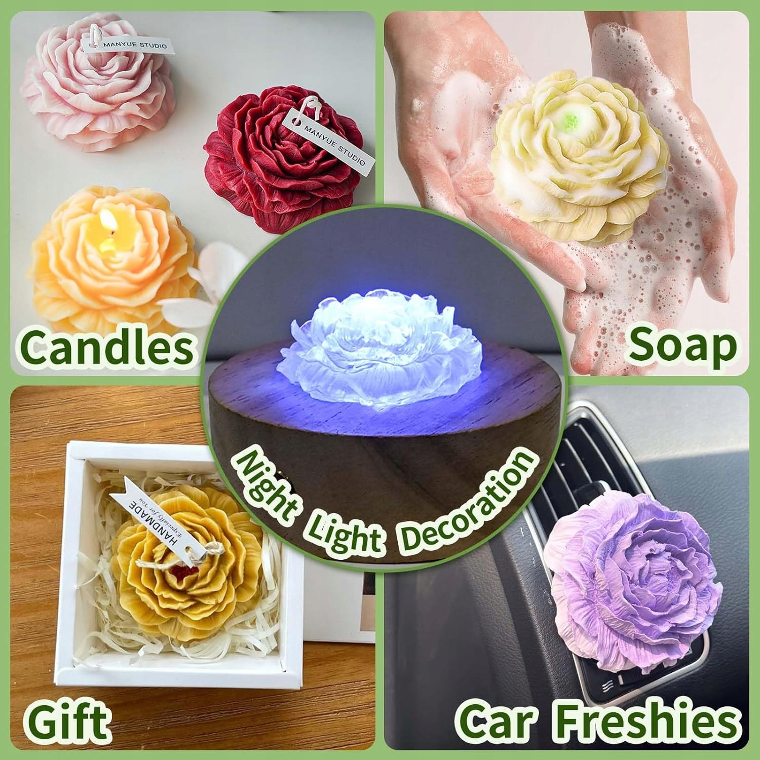 Силиконовая форма для свечного воска, мыла, пиона, цветка, многоразовая 3D форма