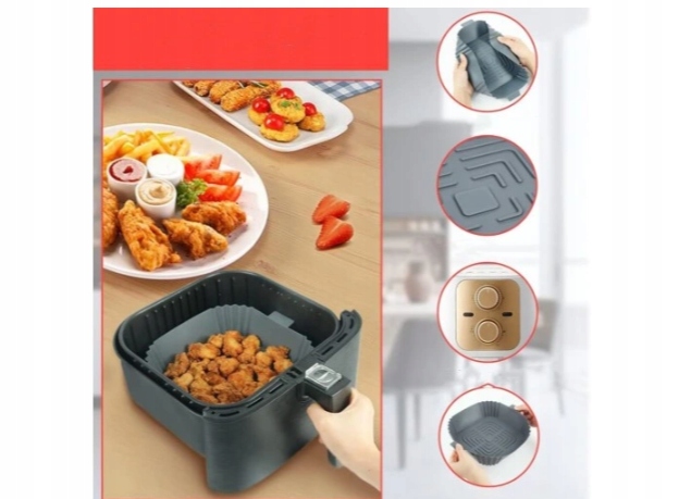 - 【Кухонный помощник】Этот силиконовый поддон для аэрофритюрницы незаменим на кухне, поскольку он помогает предотвратить прилипание еды к сковороде и гарантирует восхитительный вкус.