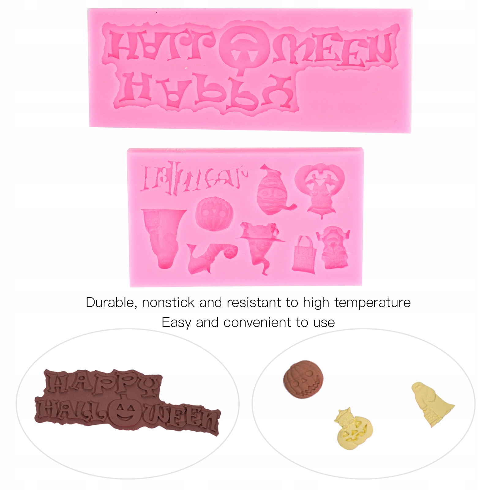 1. СИЛИКОНОВЫЙ МАТЕРИАЛ: Формы для помадки на Хэллоуин изготовлены из силиконового материала высочайшего качества, что обеспечивает высокую прочность и устойчивость к высоким температурам.
