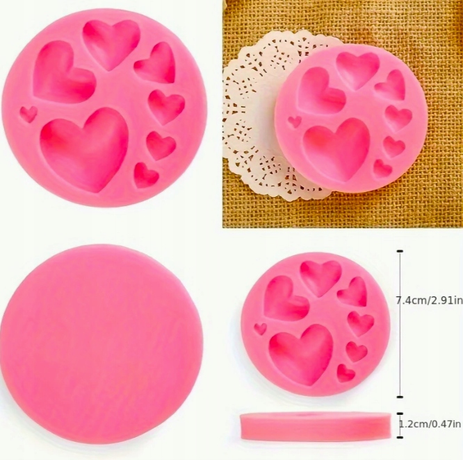 Силиконовая форма для отливки, отпечатки сердечек разного размера.