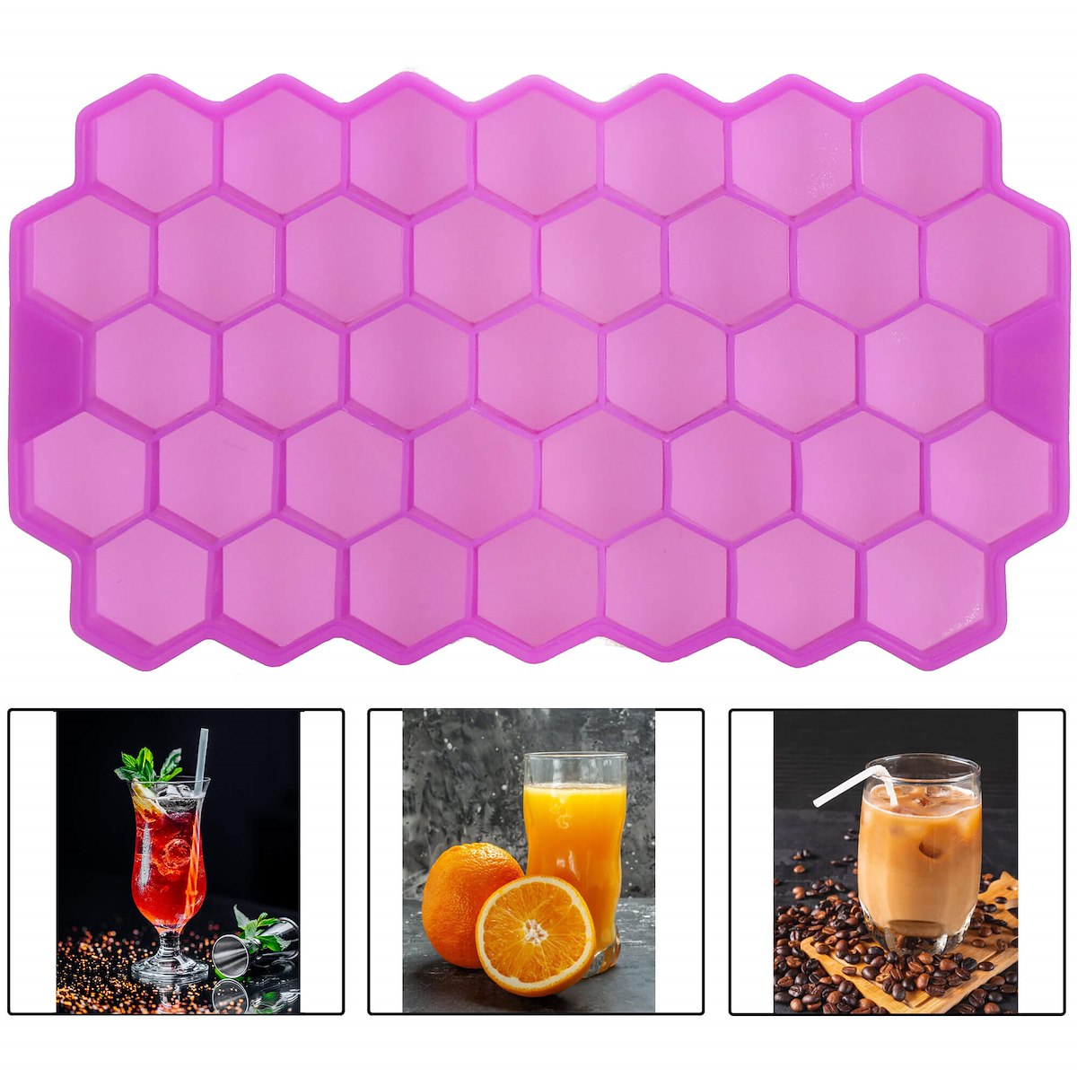 ✅Форма Силиконовая форма для кубиков льдаШестиугольник с крышкой 37 кубиков