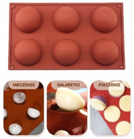 Форм имеет 6 полей диаметром примерно составляет около 6,8 см. Из двух полушарий вы можете получить 3D -жидкости для пирога в форме шарика.