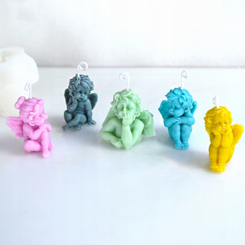 Силиконовая форма для свечей, воска, мыла, гипсовых повязок, сидящий ангел с крыльями задумался прост в использовании, а воск легко удалить, что делает производственный процесс быстрым и эффективным. р>