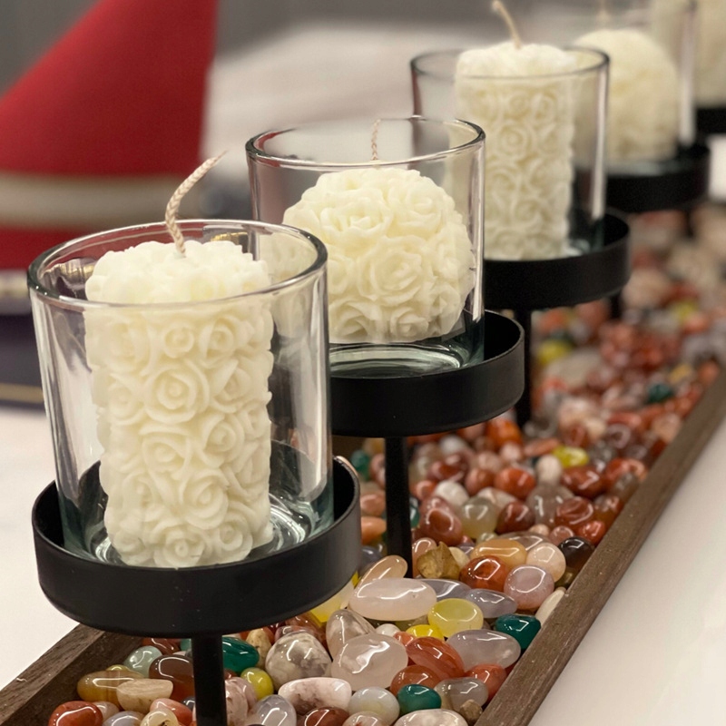 Форма цилиндра с цветами розы точно воспроизведена в силиконовой форме, благодаря чему воск формируется равномерно и имеет красивый внешний вид.