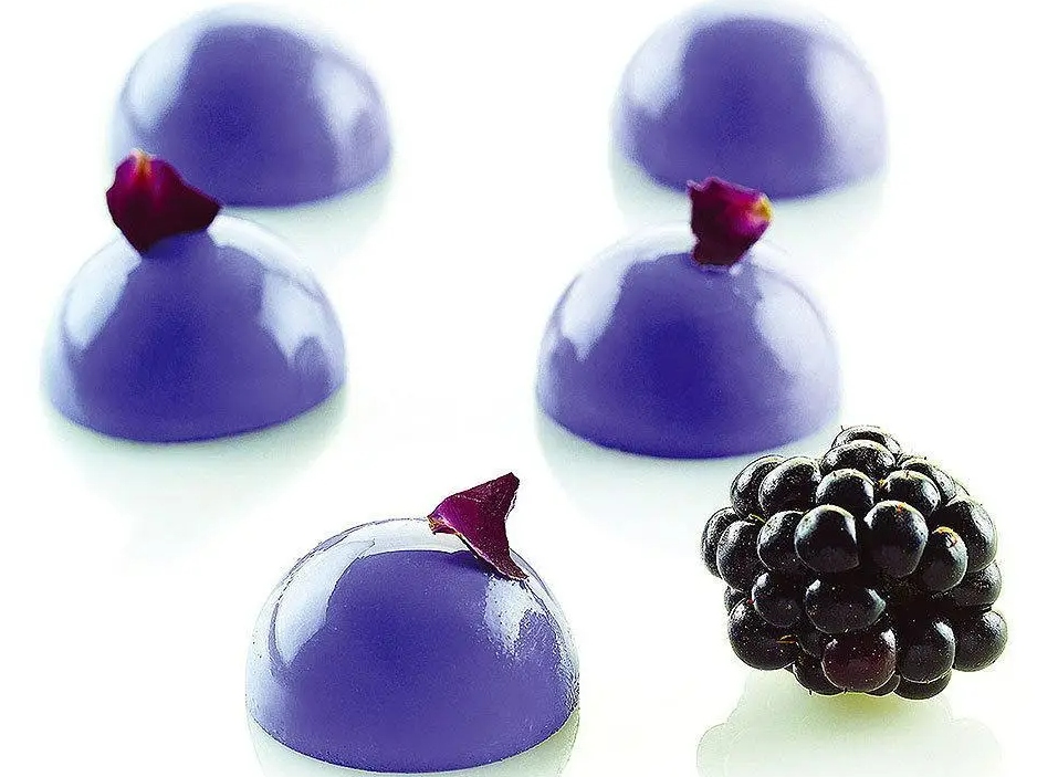 Силиконовая форма для приготовления печенья или десерта в форме полусферы. С помощью формы можно создать 15 полусферических печений диаметром 38 мм и высотой 19 мм. Емкость одной порции примерно 20 мл (объединив две полусферы можно создать целый шар).
