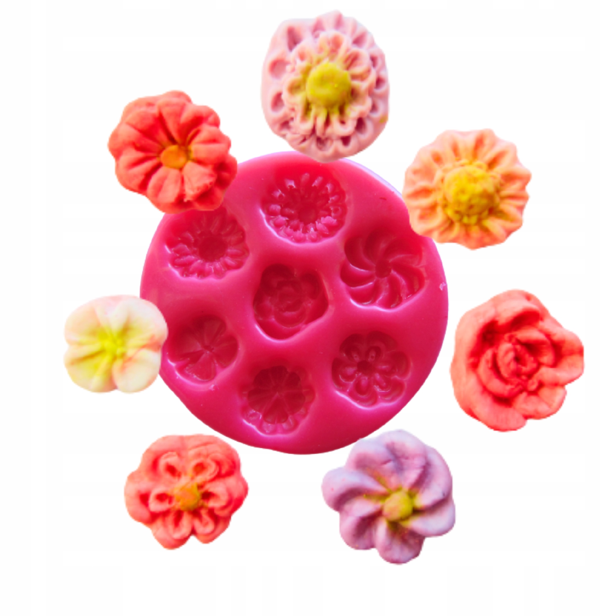 Цветы идеально подходят для мини-свечей или шоколадных украшений для кексов или тортов. Он также сыграет роль в так называемом вставка для прозрачного мыла большего размера.
