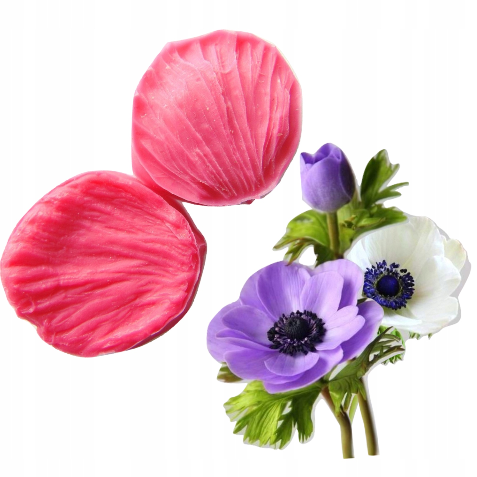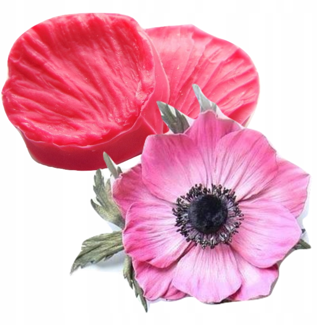 Форма позволяет создать отпечаток лепестка анемоны. Поместите среду между двумя частями и прижмите. Форму можно использовать повторно.