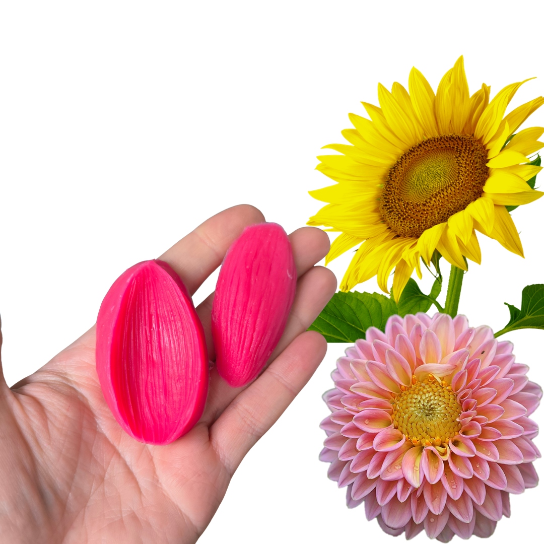 -это двойная розовая форма, созданная для точного создания реалистичных лепестков Dalia, подсолнечники других цветов. Он идеально подходит для работы с различными материалами, такими как сахарная масса, моделирование, холодный фарфор и пена . Благодаря тщательному дизайну, форма создает тонкие вены на листьях, что придает им естественный, реалистичный вид.