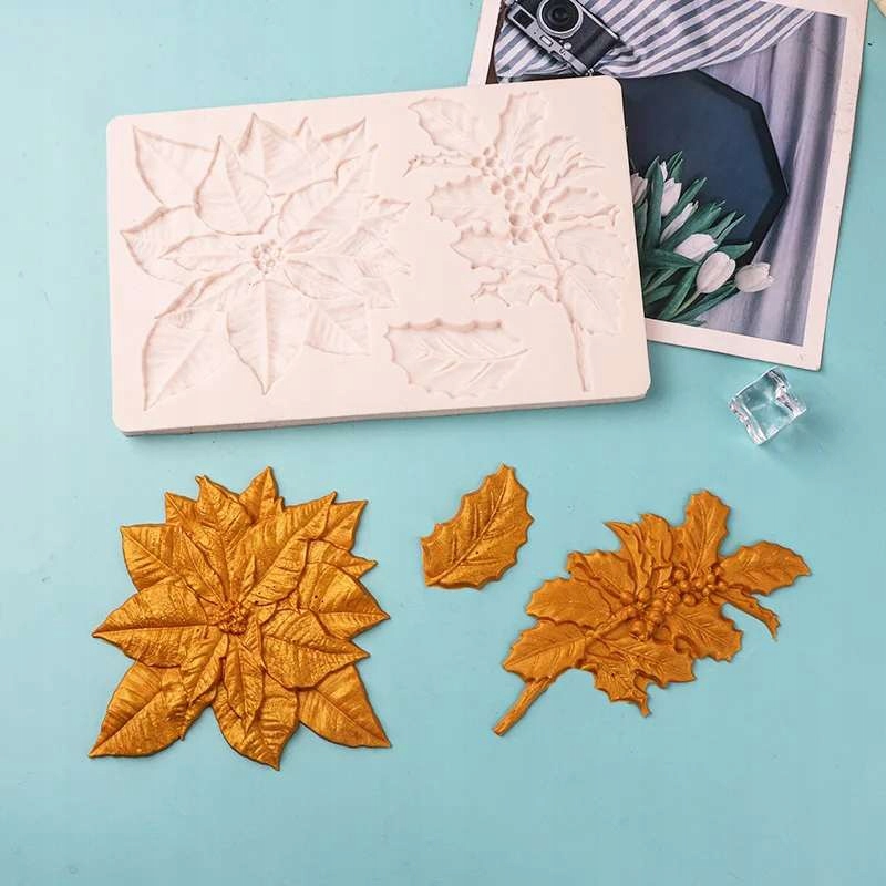 Силиконовая форма Вифлеемская звезда, лист падуба, большая форма А02013