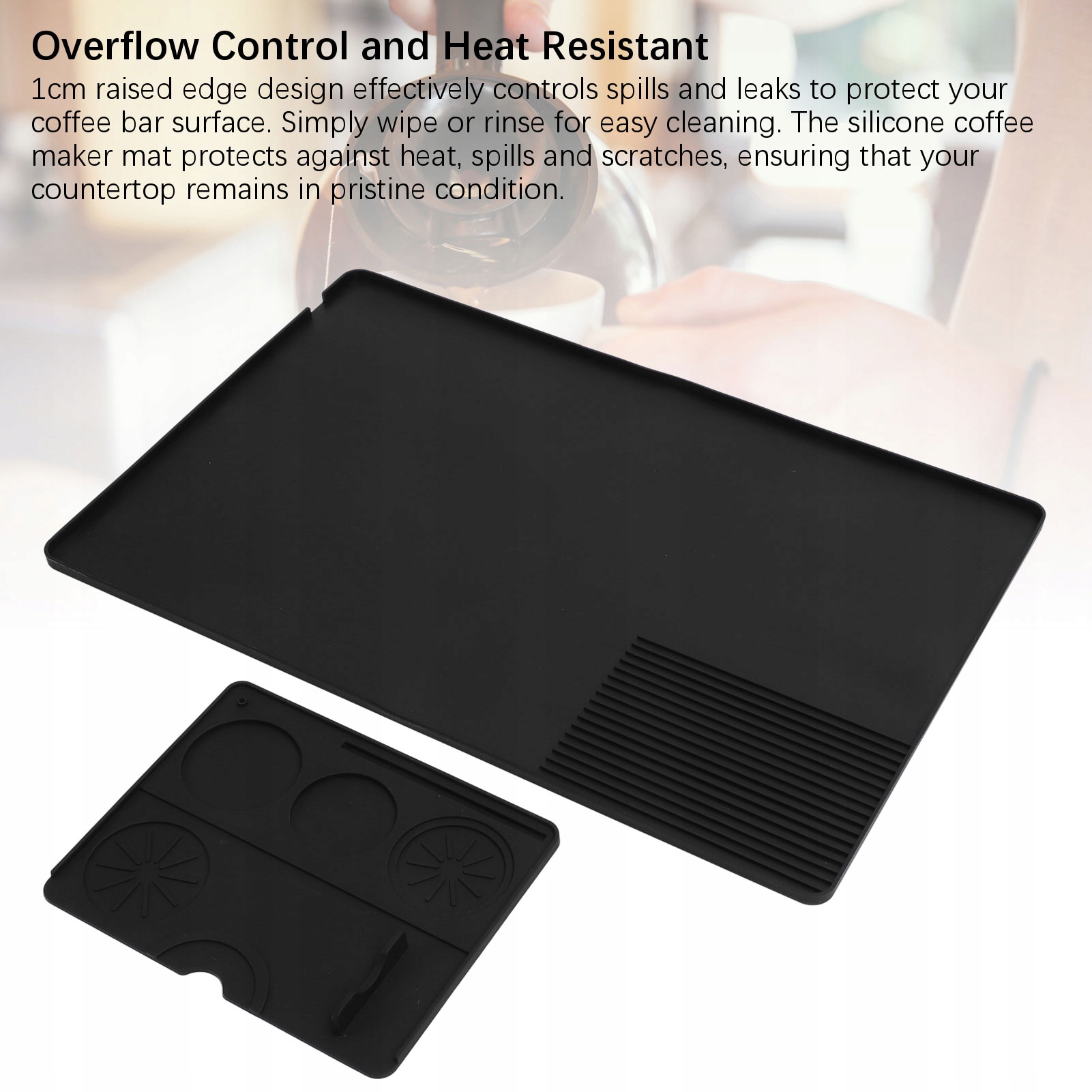 3. Управление передачи и теплостойкость: конструкция с повышенным краем на 1 см эффективно контролирует пролиты и утечки, защищая поверхность кофейного бара. Просто протрите или слейте, чтобы сделать чистку. Силиконовый кофемашина защищает от тепла, пролитых жидкостей и царапин, гарантируя, что столешница останется в безупречном состоянии.
