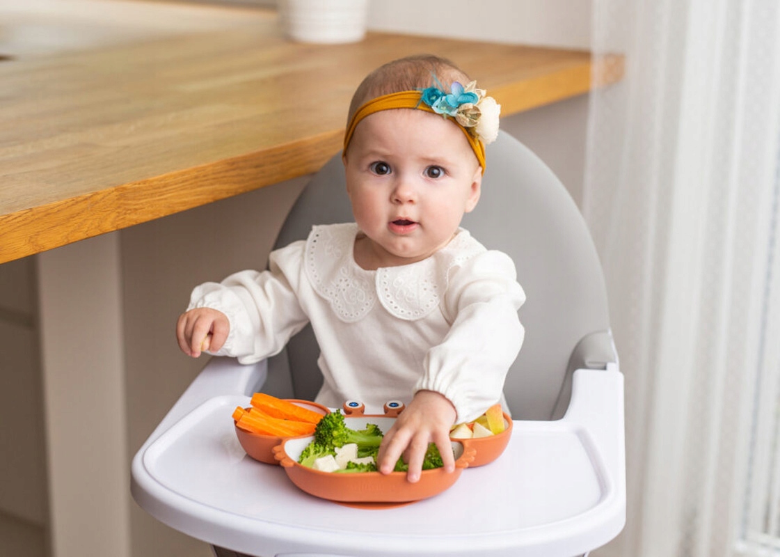 Тарелка в форме краба — отличная идея, чтобы побудить вашего малыша сделать первые попытки есть самостоятельно! Крабик оснащен тремя отделениями, которые дополнительно выделены разным цветом, что облегчает разделение продуктов. Это поможет вашему ребенку узнать цвет, текстуру и форму отдельных компонентов еды. Кроме того, под тарелкой имеется практичная присоска, позволяющая прикрепить ее к столу во время еды. Изделие предназначено для детей от 6 месяцев.