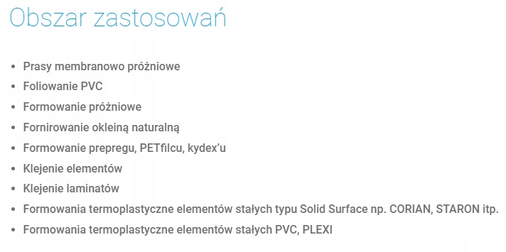 Характеризуется очень высокой растяжимостью, до 860%. Они обладают высокой устойчивостью к высоким температурам, около 250 °C. Основное применение нашей силиконовой резины – вакуумная формовка. Силиконовые мембраны могут быть гладкими с обеих сторон или с текстурированной поверхностью. Все эти параметры означают, что каждый клиент должен найти подходящую мембрану для своего применения. Формовка и склеивание мембраной вызывает равномерное давление на всю поверхность плоского или изогнутого элемента, что положительно влияет на качество соединения.