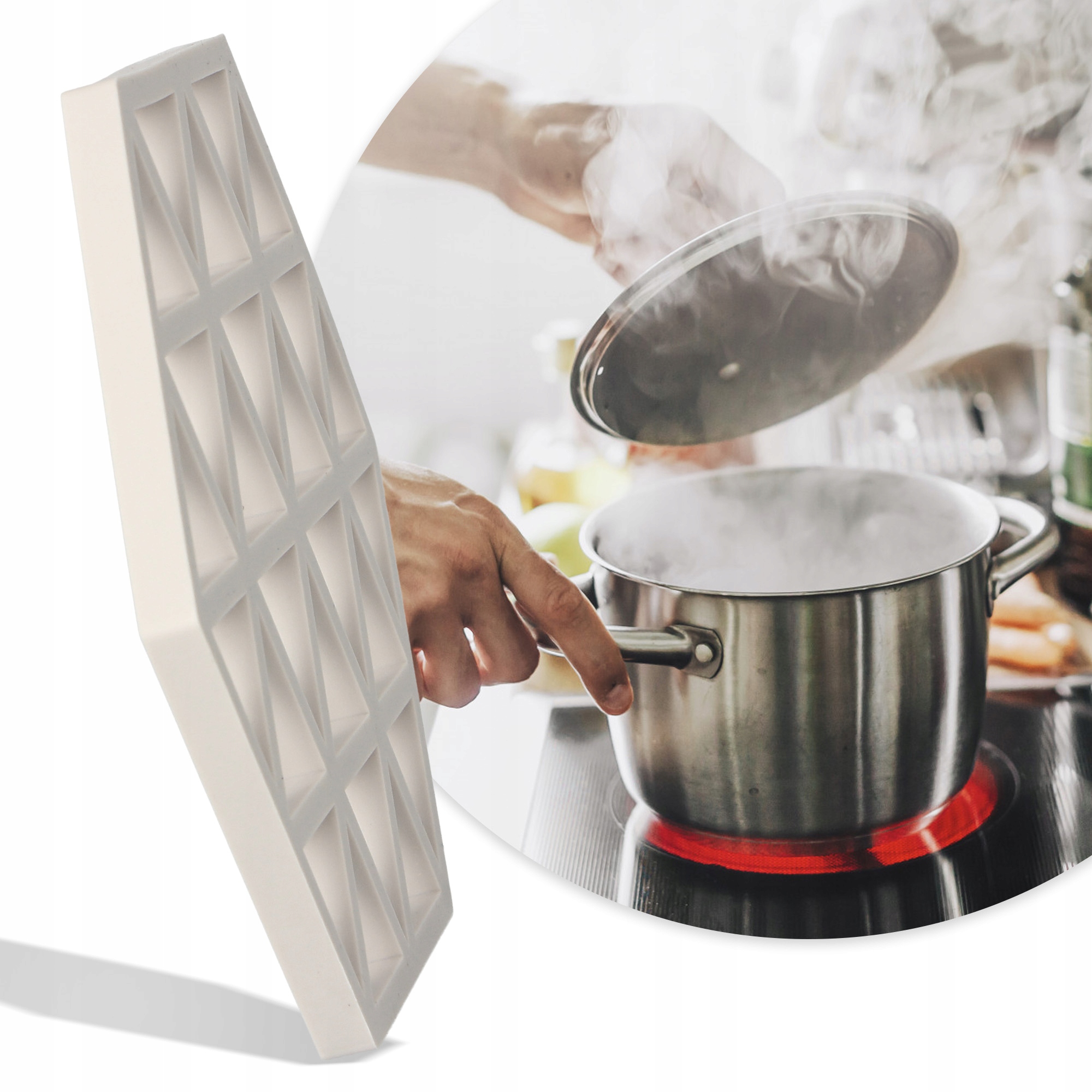 <ул> <ли> Цвет: Кремовый <ли> Форма: треугольники <ли> Материал: силикон <ли> Цель: изоляция поверхностей от горячих блюд. <ли> Можно мыть в посудомоечной машине: Да <ли> Длина одной стороны: 8 см <ли> Рост: 1 см.Номер продукта: DZ020312002-V02