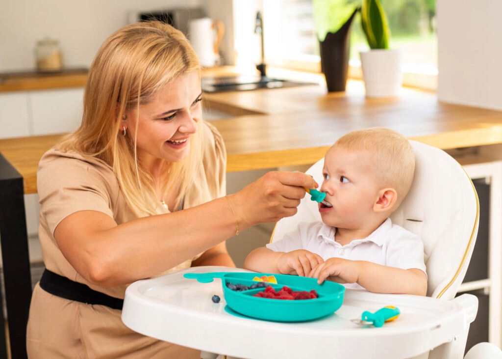Силиконовая тарелка Gilugums с всасывающей чашкой и столовыми приборами