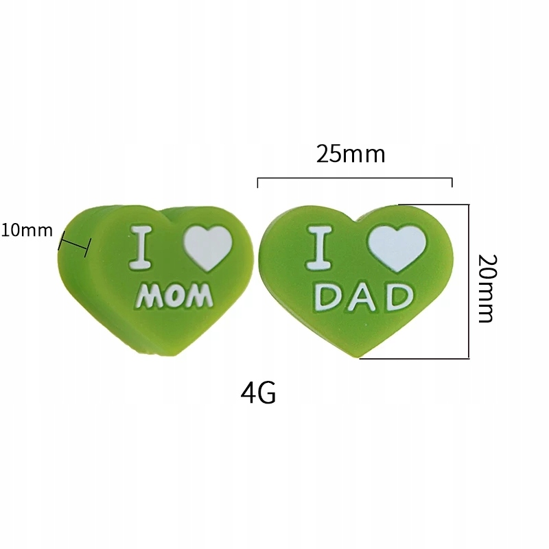 -силиконовая бусина СЕРДЦЕ (ДВУХСТОРОННЯЯ: «Я люблю маму» с одной стороны, «Я люблю папу» с другой