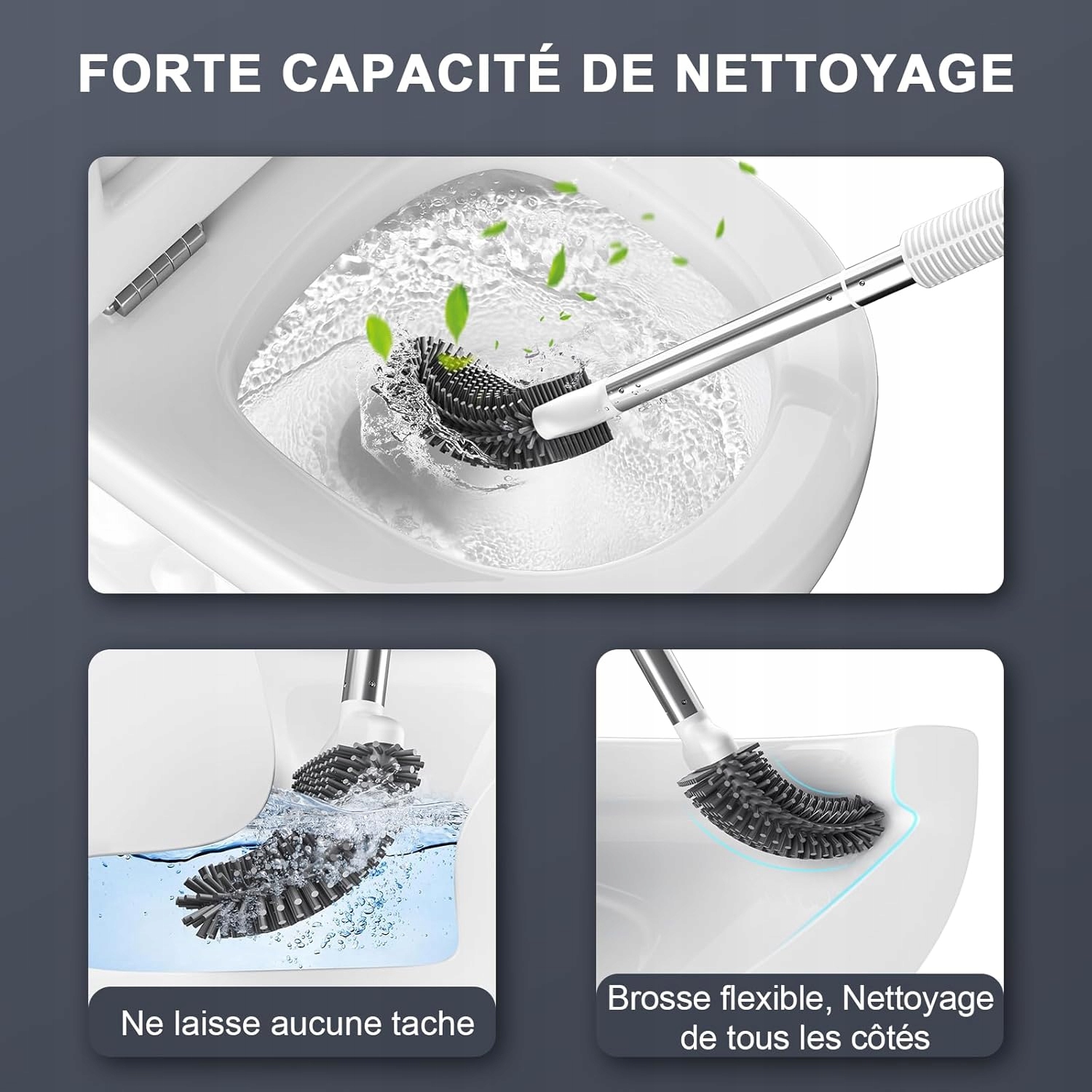 • ЩЕТКА, НЕ КОРАЧАЮЩАЯСЯ --- Силиконовая насадка щетки безопасна для поверхностей унитаза и остается абсолютно чистой на протяжении всего процесса.