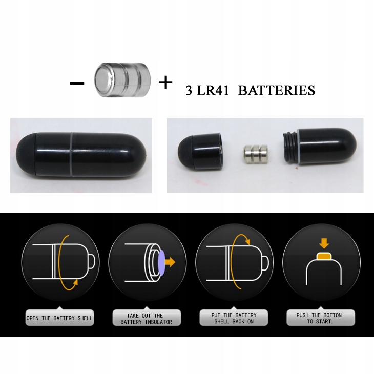<ул>В комплект входят таблеточные батарейки, питающие вибрирующий снаряд (3 х LR41).