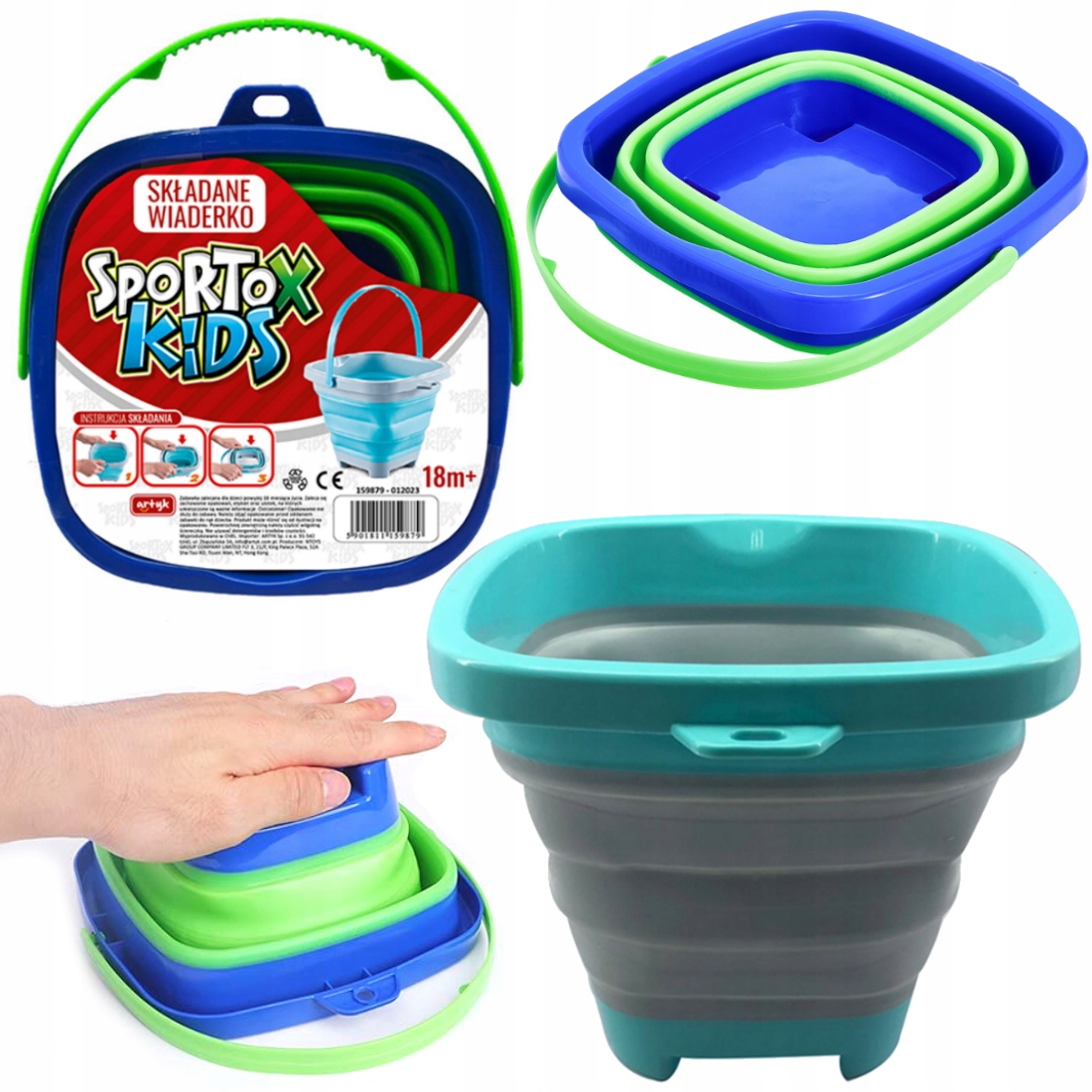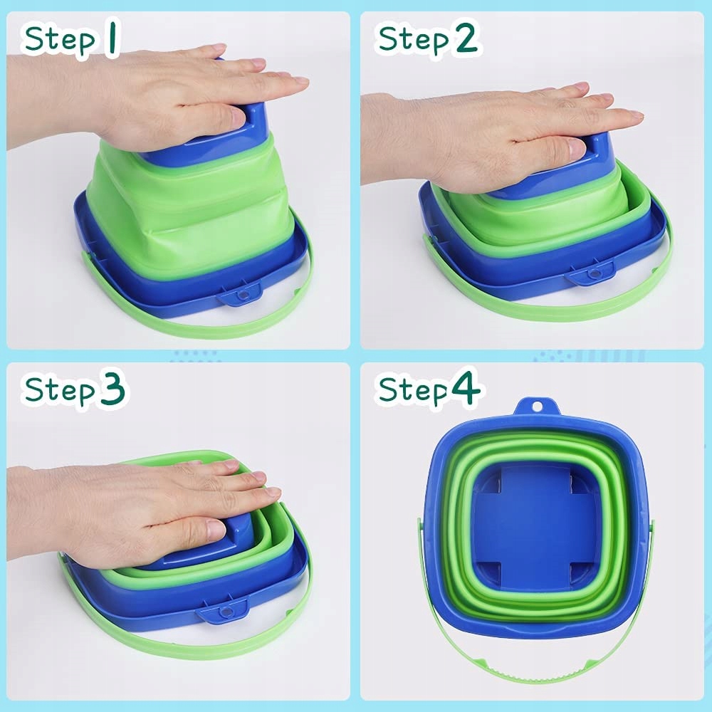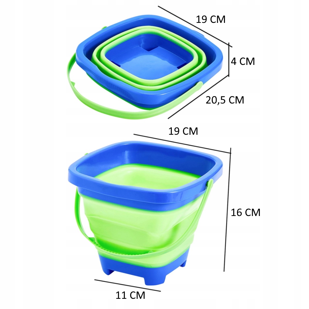 - Размеры сложенного ведра примерно: 19 x 19 x 4 см.