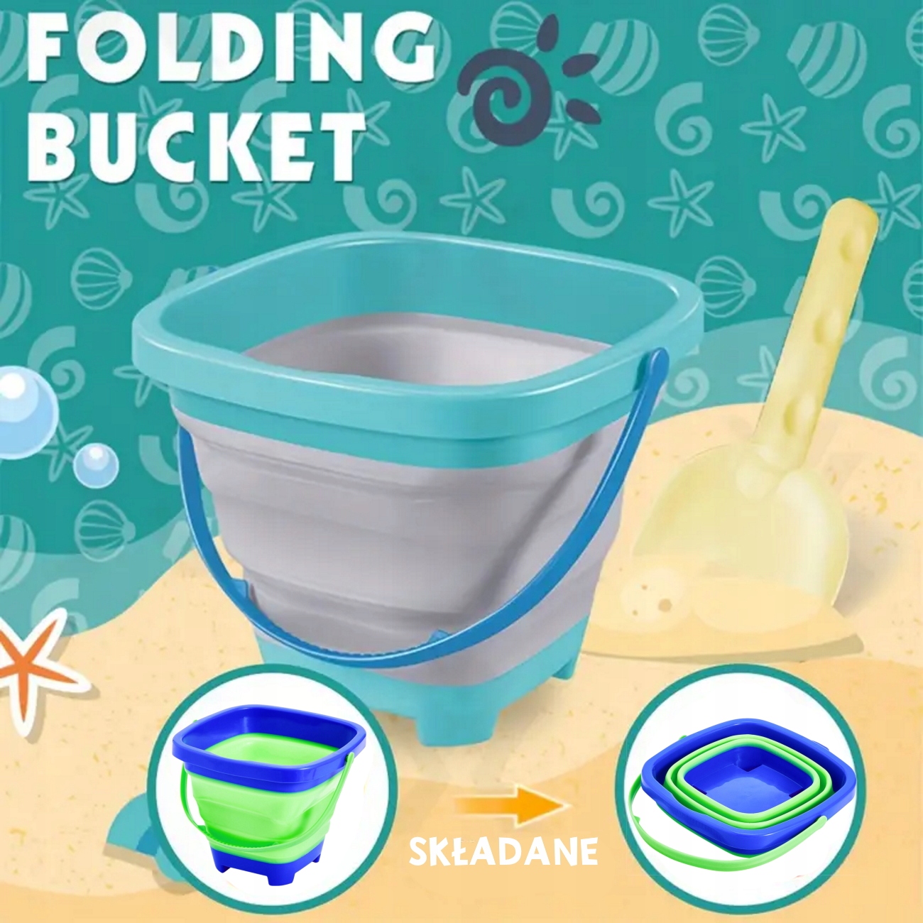 СКЛАДНОЕ СИЛИКОНОВОЕ ВЕДРО ДЛЯ ПЕСКА, 2 ЦВЕТА