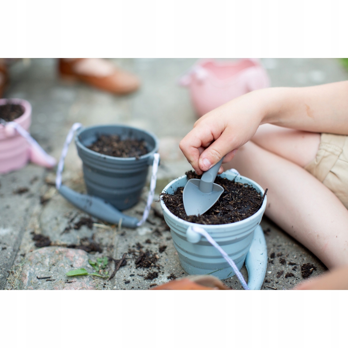 Силиконовое ведро с Scrunch Spatula - идеальный набор для маленького садовника!