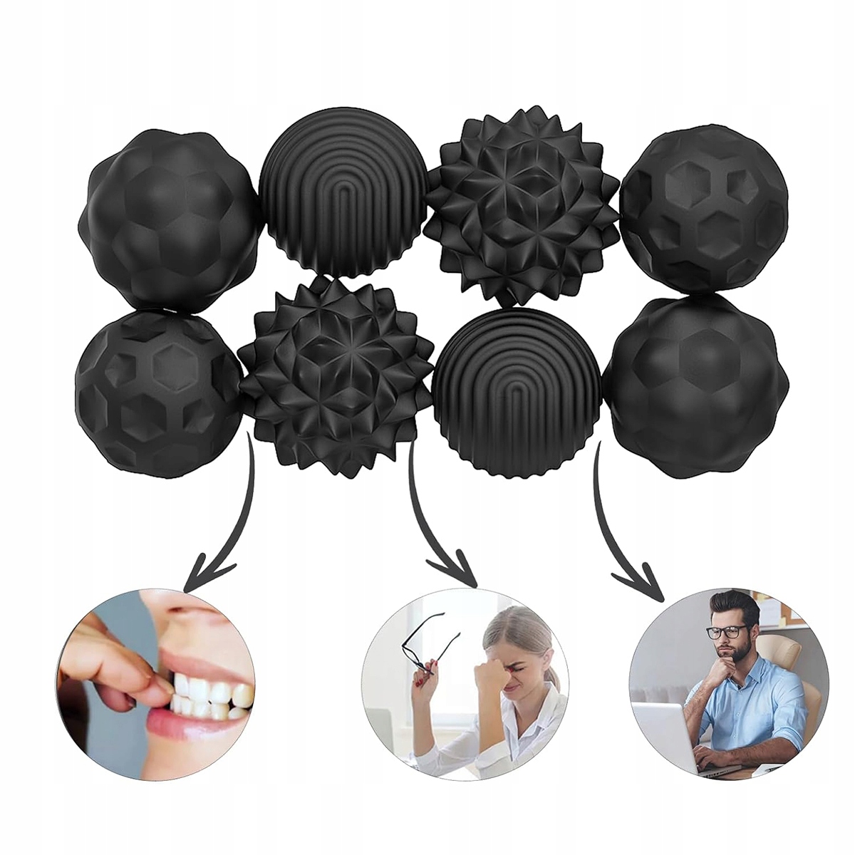 СИЛИКОНОВЫЕ АНТИСТРЕССОВЫЕ ШАРИКИ, МАГНИТНЫЕ, СЕНСОРНЫЕ, ЧЕРНЫЕ НАБОР ИЗ 8 ШТ.