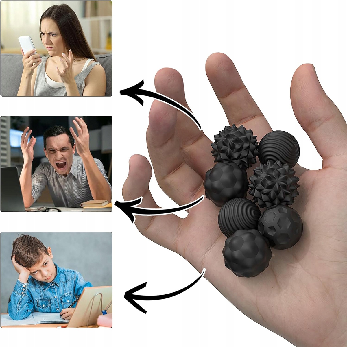 Достаньте 8 магнитных сенсорных шариков — компактного и эффективного инструмента для релаксации.