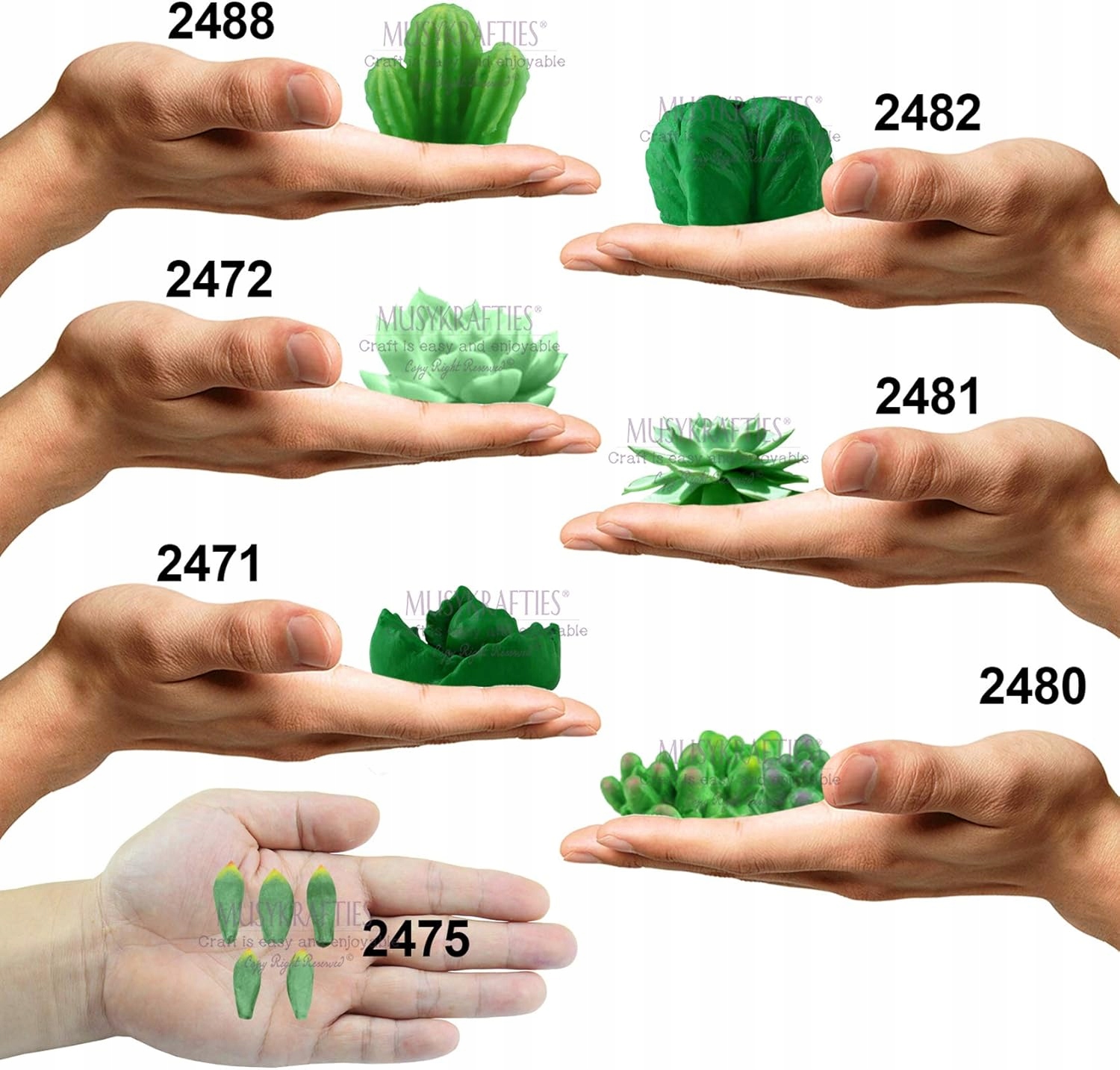 - Формы для кактусов и суккулентов. Различные формы: розетки, колобок, эхеверия, очиток, семпервивум, граптоверия, суккуленты и бочки из тигровой челюсти, колонны, шаровидный кактус. Высота около 2,5-7,6 см.