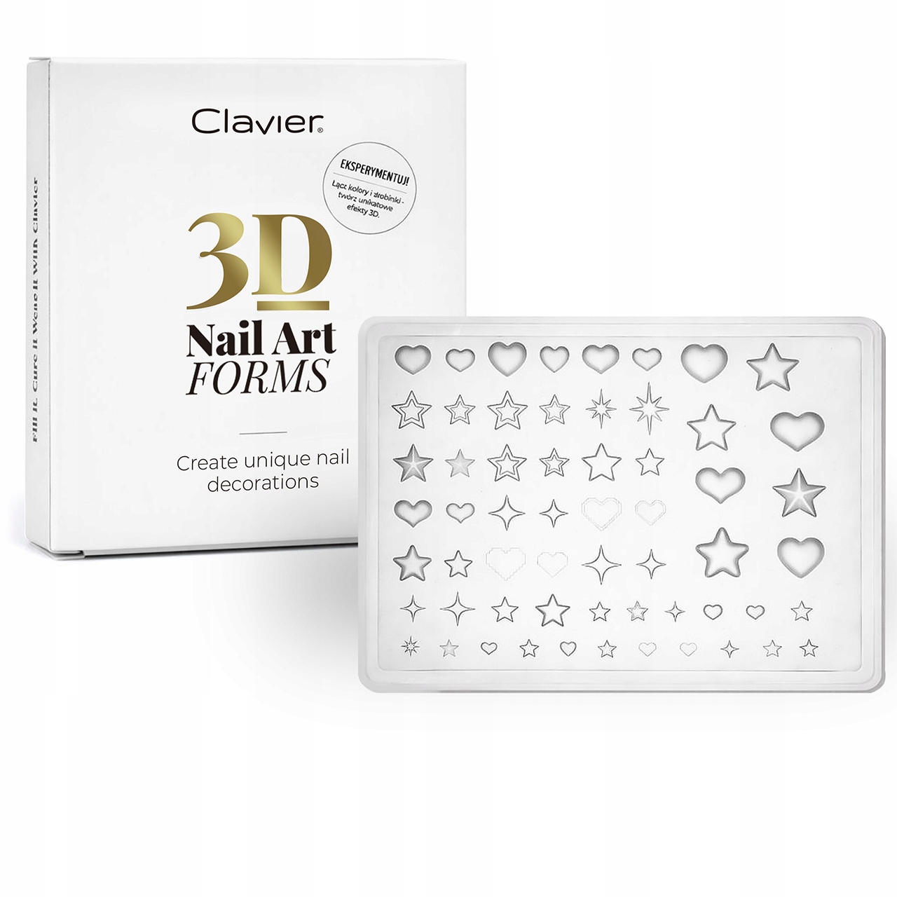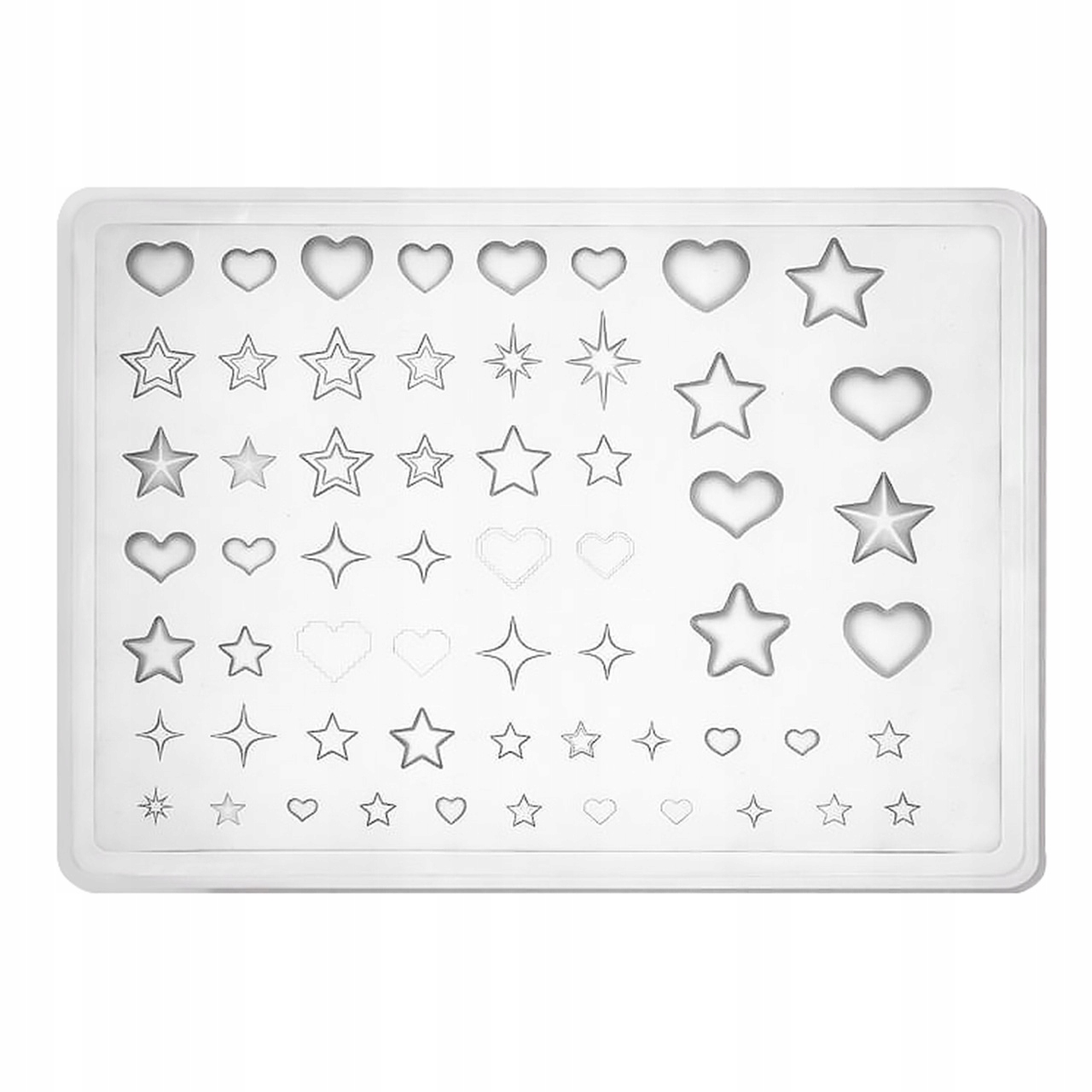 В упаковке целых 59 различных узоров со звездами и сердечками, которые отлично подойдут как для тонких, романтических укладок, так и для более выразительного 3D нейл-арта. Формы совместимы с гелем, акрилом, акриловым гелем и декоративными массами, что позволяет создавать долговечные, эстетичные украшения с трехмерным эффектом.