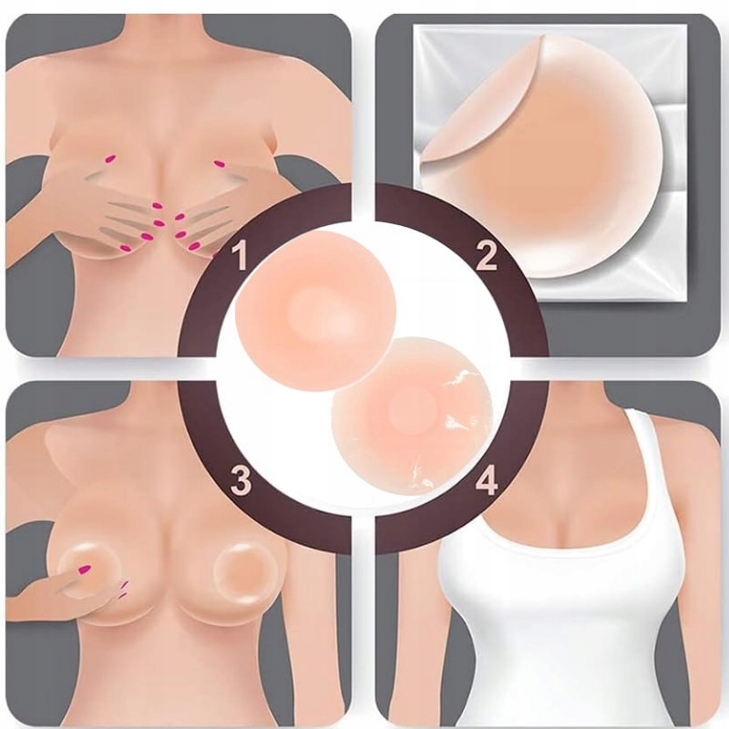 - Силикон накладки отлично смотрятся под требовательными нарядами, например, с платьями с открытой спиной, глубокими вырезамии даже под купальниками. Благодаря универсальному размеру (диаметр 6,5 см) они совершенно незаметны, обеспечивая максимальную конфиденциальность
