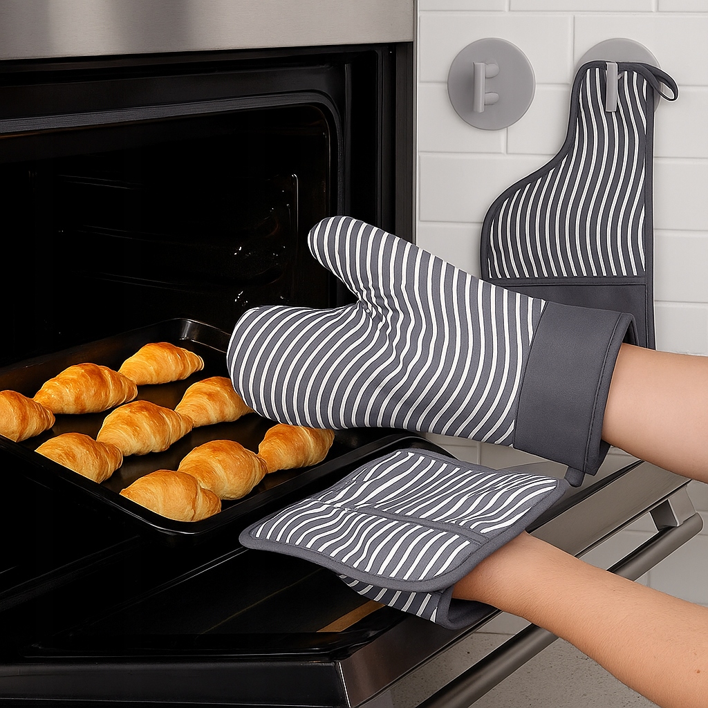 Высокие температуры - перчатки защищают от горячих поверхностей и температуры, что позволяет вам безопасно перемещать горшки, листы или сосуды из духовки без риска ожогов.