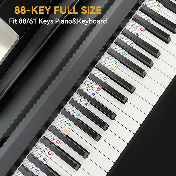 - лента изготовлена из силикона и соединяет этикетки последовательно, поэтому вам не нужно приклеить их к кнопкам, таким как наклейки на фортепиано. Легко установить, легко удалить, не оставляя следы и сохраняет клавиатуру чистой и заказом.