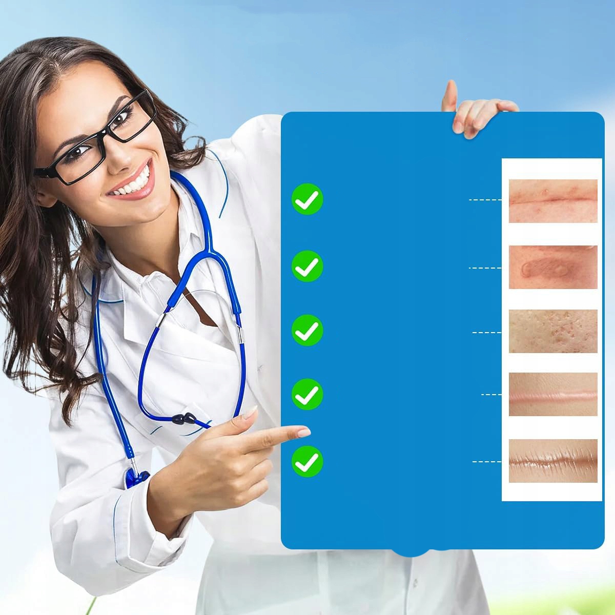 【Силиконовый пластырь от шрамов】: Борется со всеми типами рубцов – послеоперационных, после кесарева сечения, от прыщей, гипертрофических. Стимулирует естественный кожный барьер, обеспечивая оптимальную защиту и заметно уменьшая шрамы.