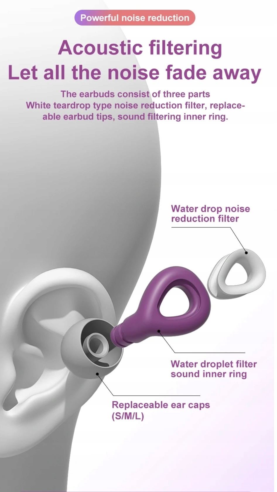 Идеально для обеспечения мира во время сна и водонепроницаемой звуковой изоляции во время плавания. Удобный опыт звукоизоляции в любом месте и времени.