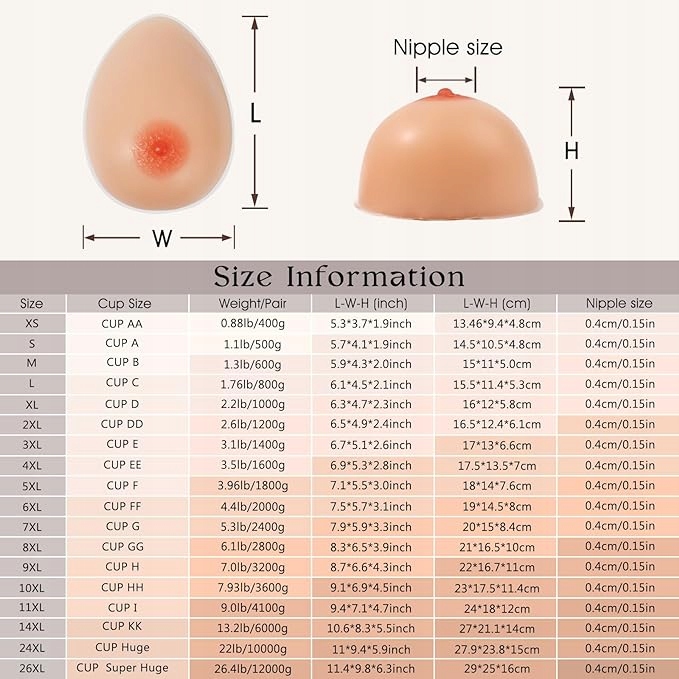 - Размер чашки B, 600 г/пара. В комплекте: одна пара силиконовых протезов груди. Как всегда, избегайте смущения. Ваши протезы груди будут отправлены в упаковке без опознавательных знаков. После получения не снимайте прозрачную защитную пленку. Положите его в карманный бюстгальтер и носите вместе