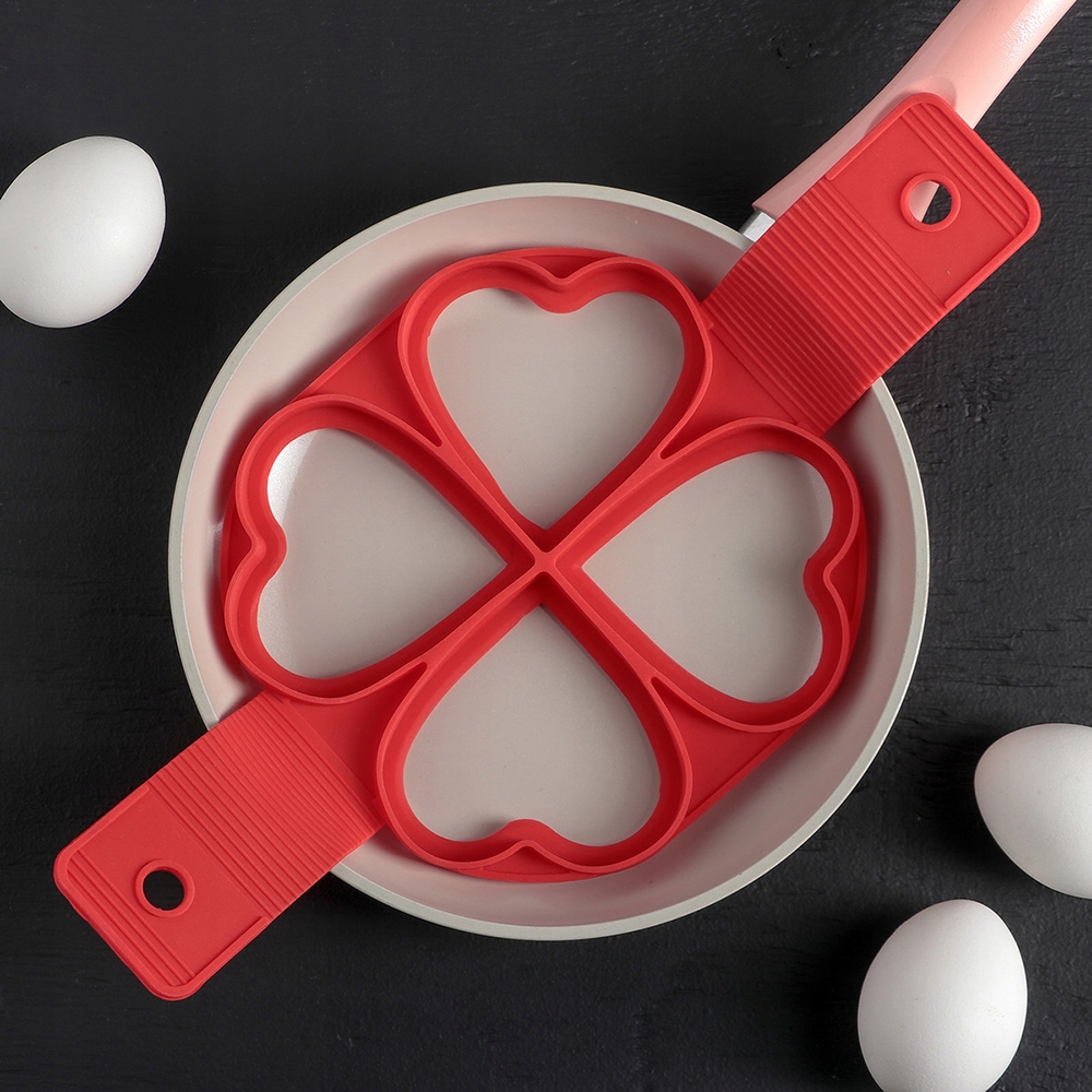 Силиконовая форма для выпечки блинов и жарки яиц – пригодится каждой хозяйке. Он оснащен целых 4 отверстиями в форме сердечек! Он идеально подходит для выпечки печенья и яиц определенной формы. Он чрезвычайно гибок, не требует дополнительной смазки и может использоваться на различных слоях – керамике, граните и даже тефлоне.