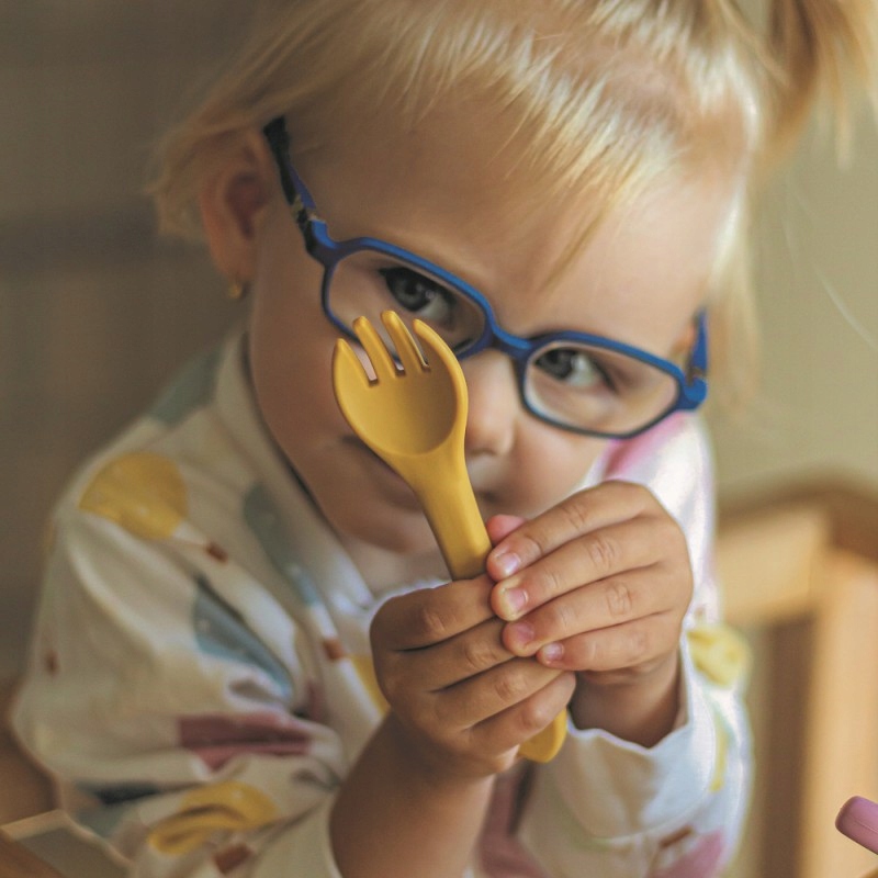 - Мягкие кончики вилок безопасны для детей. нежное лицо ребенка
