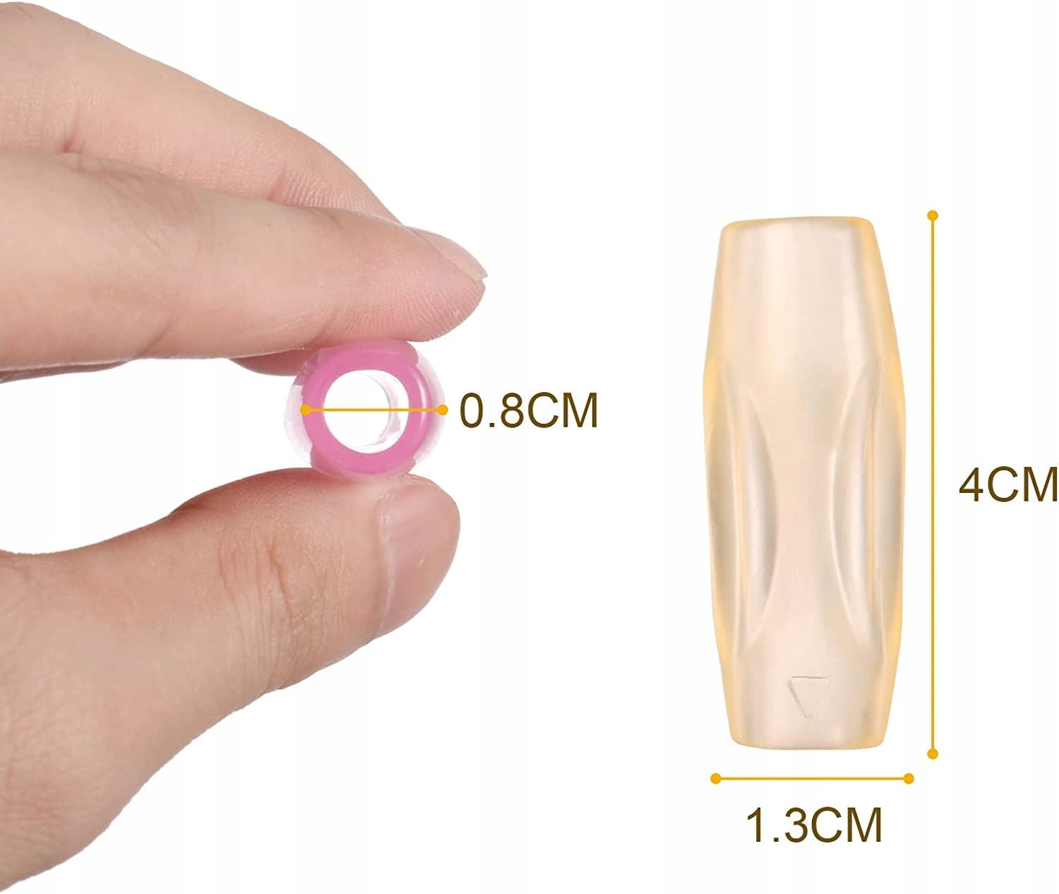 Колпачки изготовлены из мягкой и прочной резины, что делает их очень удобными в использовании. Он не давит на пальцы и не натирает их. Он имеет идеальную форму, что защитит от неуместной привычки держать пишущий инструмент.