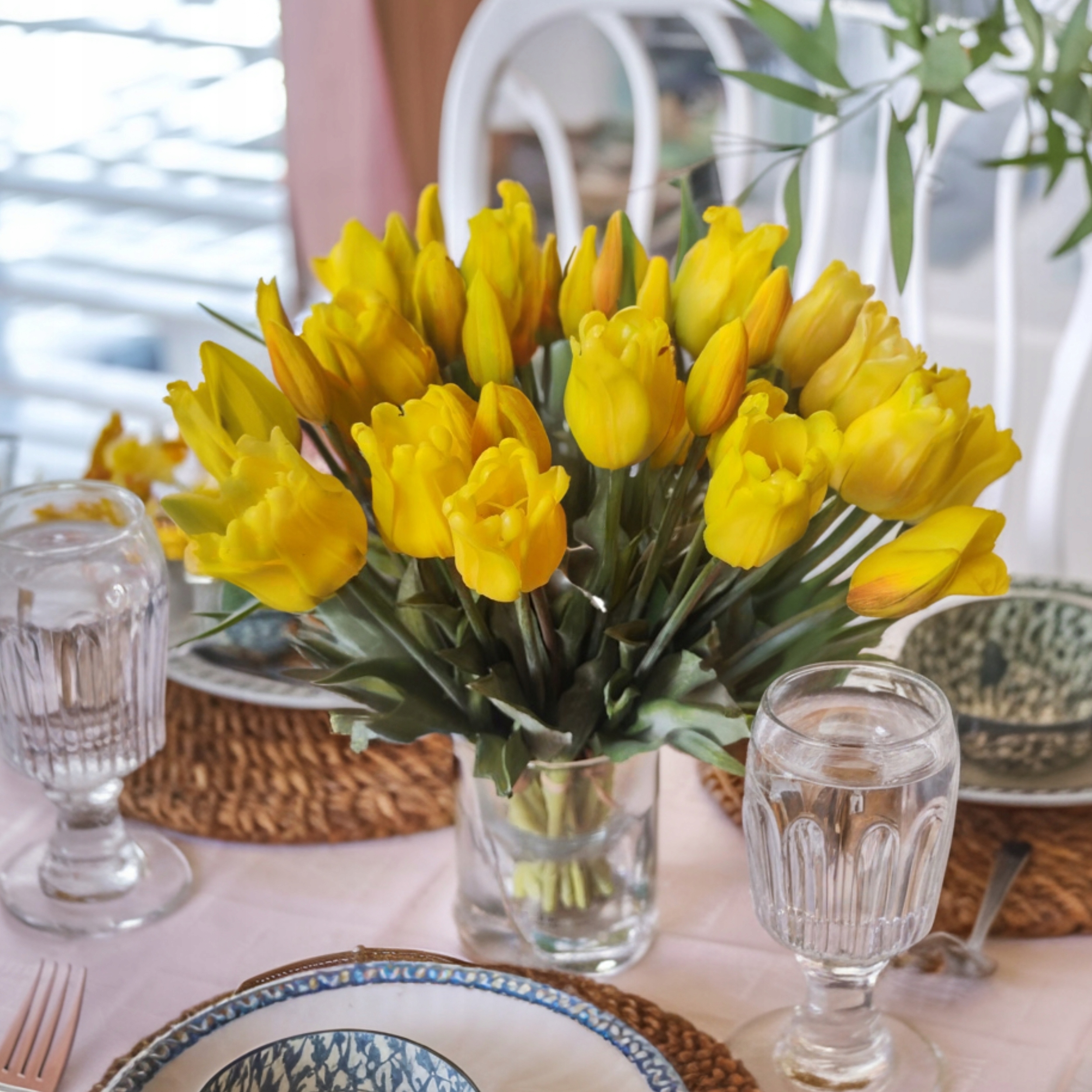 Тюльпаны выглядят как реальные? Их мягкие хлопья и гибкие стебли затрудняют различие от естественных тюльпанов. Они могут быть осторожно согнуты и расположены в любом случае. Однако, чтобы сохранить их красоту, стоит избегать долгосрочного воздействия интенсивных погодных условий. Внешний вид. Букет хорошо сочетается с другими искусственными цветами , создавая богатые и эффективные флорические аранжировки в любом стиле. Тюльпаны продаются в виде букета, но они могут быть разделены на отдельные части и свободно составлены с другими цветами