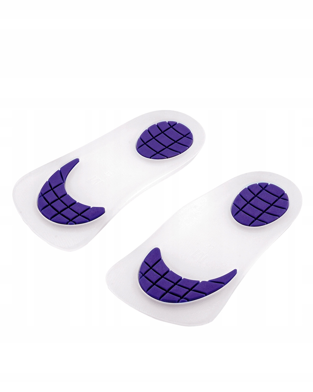Высококачественные силиконовые стельки 3/4. Изготовлены из силикона с мягкими цветными участками в области пятки и средней части стопы, которые обеспечивают дополнительную нагрузку на чувствительные участки. Стельки также поддерживают продольный свод стопы, что обеспечивает дополнительную поддержку при плоскостопии.