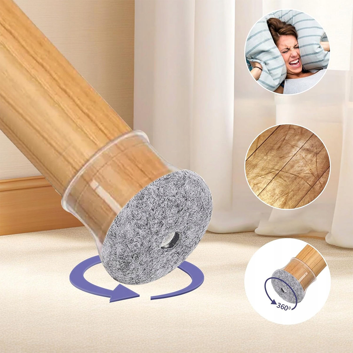 Силиконовые чехлы на ножки стульев с фетровыми накладками идеально подходят к ножкам мебели и эффективно защищают твердые поверхности и кафельный пол от царапин!