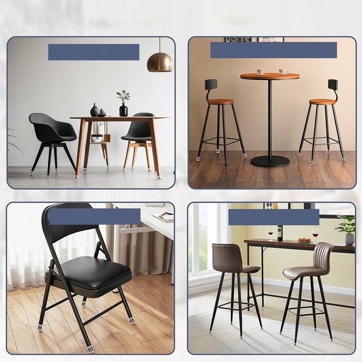 Просто наденьте его на ножку стула – он идеально сядет и не соскользнет. Никаких инструментов не требуется. Подходит для различных типов стульев, таких как ресторанные стулья, садовые стулья, кухонные стулья и т. д. Также идеально подходит для слегка наклоненных ножек стульев.