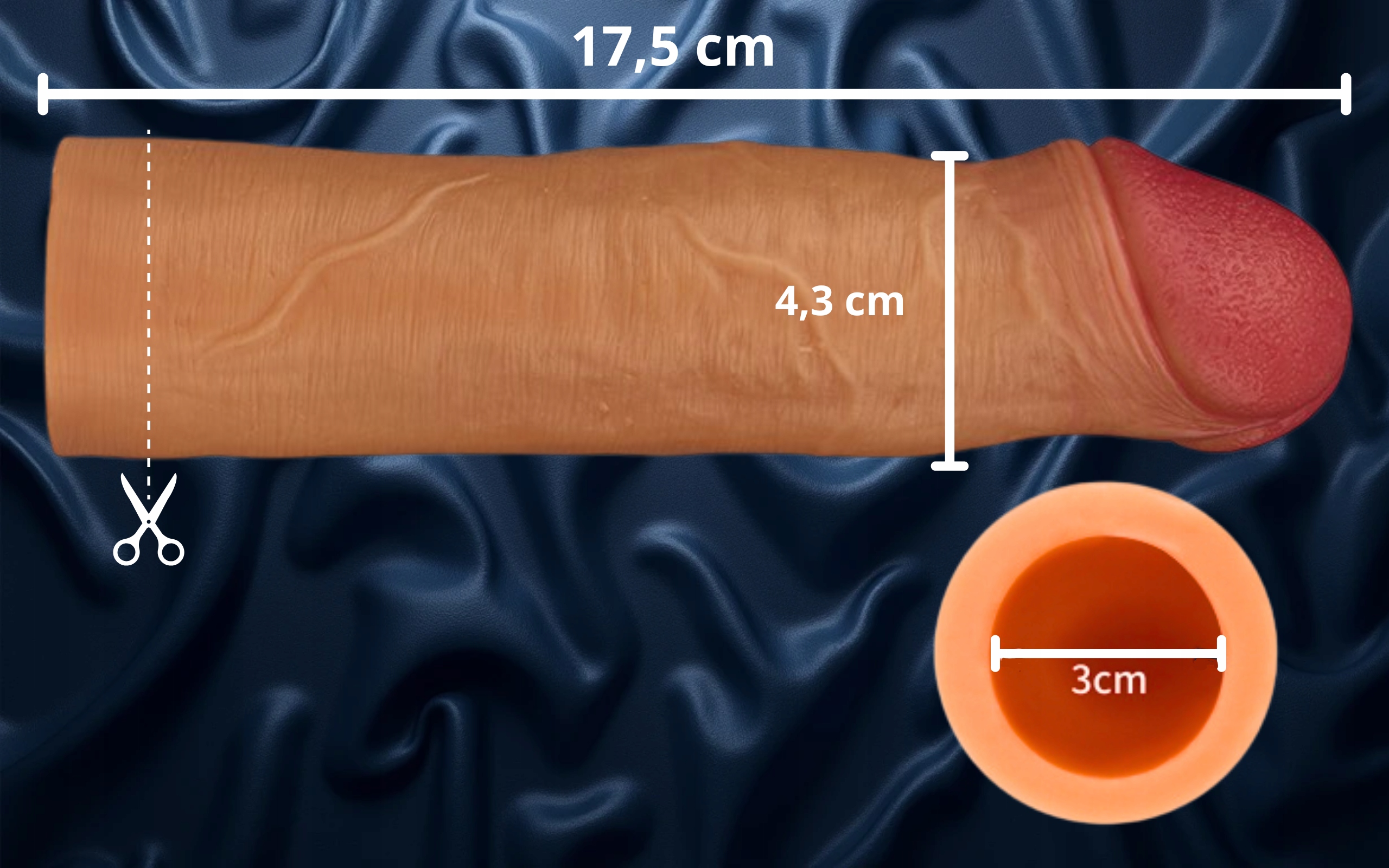 Конец наложения можно разрезать, чтобы соответствовать еще лучше к длине элемента. Гибкая структура безопасно завершает пенис, адаптируясь к его форме и обеспечивая стабильность во время близкого.